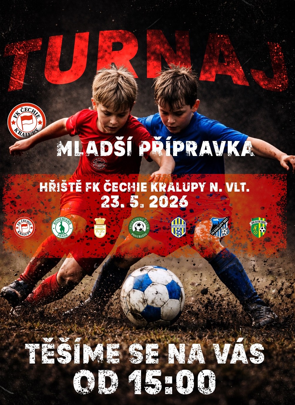 23.05.2026 proběhne od 15:00 v areálu FK Čechie Kralupy turnaj mladší přípravky. Přijďte fandit